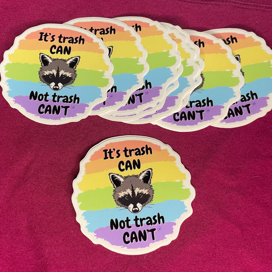 "trash CAN not trash CAN'T" Vinyl Raccoon Sticker